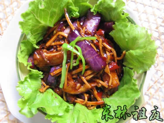 【主料】茄子250克,素雞絲少許 【副料】青椒絲少許,四川豆瓣辣醬少許
