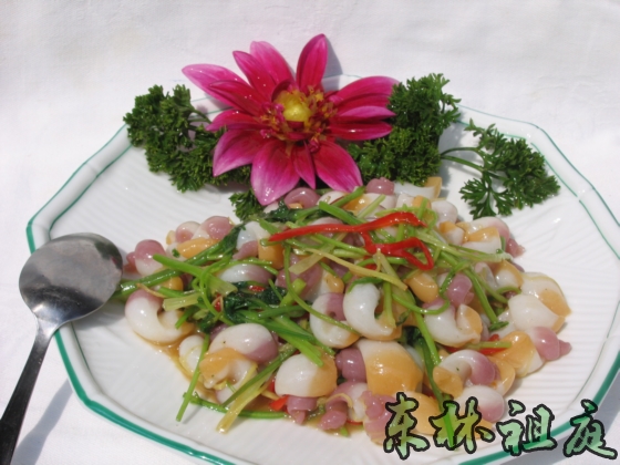 另起鍋,鍋留少許底油,把姜絲和紅辣椒放入煸炒幾下后,將已過油完的黃螺,放入加少許水調(diào)味,打芡加香菜段,拌均淋上少許包尾油出鍋裝盆即成。