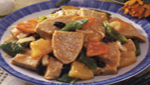 素魚1條,洋蔥1/4個,青椒1/2個,胡蘿卜1/3個,罐頭菠蘿2片,葡萄干(裝飾用)1大匙,姜5片,大蒜5瓣,干淀粉1/4杯 調(diào)味料: A料:紹興酒、醬油、醋、番茄醬、濕淀粉各1大匙,糖2大匙,熱水或素高湯1/2杯