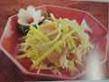 作法:1、百頁切長5公分,寬3公分的薄片,鍋中加清水1公升,下堿水1茶 匙,煮滾后,放入百頁,采取浸泡的方式泡12分鐘,用手試摸,當顏 色變白,質 感滑細時撈出,再 加清水煮滾1次,完全洗凈堿味,滴干水 分,備用。 2、將姜磨成姜茸。 3、芹菜切5公分長絲,放入滾水中汆燙一下,撈出后和已處理好的百頁, 姜茸及調味料拌勻即可。 |