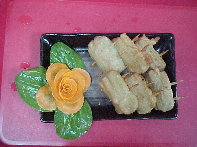 配料:原料:素魚柳半條,西芹5根,牙簽24支 調料:面包糠少許,生粉4兩,面粉2兩,鹽少許