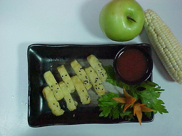 1、將土豆去皮后煮熟,搓成泥;面粉生粉調成糊狀備用。 2、藕,口蘑,火腿均切丁,加入調料,在鍋中炒香。 3、用土豆泥包好2,然后掛糊油炸至金黃香脆,切片后裝盤。