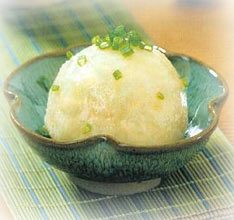 做法:將土豆洗凈煮熟,搗成泥狀,一邊搗,一邊加入黃油、鹽、醬油和牛奶,搗碎、搗勻后,裝盤,灑上香菜末。這是三人分量,配以下面的色拉或熱湯。