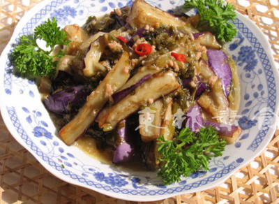 配料:材料:茄子 雪菜 紅尖椒 素火腿末