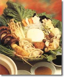 配料:用料:鮮冬菇、鮮草菇、鮮白菌、金菇、濕粉絲各之兩(約80克),濕云耳、濕木耳、濕金針、豆腐泡、生筋、炸面筋、腐球各1兩(約40克),豆腐2塊,生菜、菠菜各4兩(約160克),甘筍、白蘿卜數片,素餃子10只。 湯料:素上湯6杯,沙茶醬1/2小瓶、花生醬4湯匙,椰汁、淡奶各半杯,辣油1茶匙