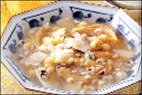 配料:材料:四神料(內(nèi)含芡實(shí)、薏仁、淮山、茯苓),干蓮子半杯,素肚1個(gè) 調(diào)味料:鹽1茶匙,素高湯5杯制作方法: 1、將四神料放入鍋內(nèi),加素高湯煮開(kāi),改小火煮4">