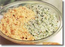配料:甘筍飯材料:白飯1/2碗,甘筍茸1/2碗,鮮草菇茸2湯匙,榨菜茸1茶匙,姜茸1/4茶匙,油2湯匙 菠菜飯材料:白飯1/2碗,菠菜茸1/2碗,鮮冬菇茸2湯匙,榨菜茸1茶匙,姜茸1/4茶匙,油2湯匙 調味料:鹽1/2茶匙