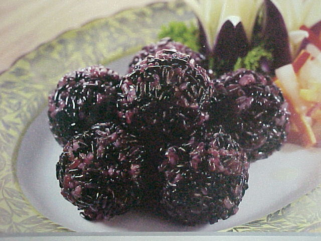 作法: 1、紫糯米,圓糯米拌均勻,加入冷水浸泡5小時,再加上淹過糯米之水量 入蒸鍋蒸40分鐘。 2、酸菜梗、香菇切細丁,和姜末、紅椒末一起入鍋爆香,加入素高湯,以 小火慢滾10分鐘后,下調料,機為酸菜餡。 3、蒸熟的糯米飯各取35克,包入酸菜餡10克,花生粉1茶匙,再用手捏 成圓球狀,入蒸鍋蒸3分鐘即成。