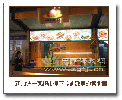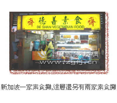 去食物攤, 通常在一大排葷食鋪中總有一兩間素食鋪子. 最平民化的是路邊攤, 條件好的是購物中心里的飲食部. 這兩種素食小鋪子, 招牌上一般有”齋”字和英文的”vegetarian”字樣, 價錢很便宜(在大馬每盤2.5-3零格,1零格相當于人民幣2.2元,在新加坡要貴些,2.5-3新幣,1新幣為人民幣4.7元), 味道很好,可以打包當午飯或回家吃. 最喜歡的是炒米粉河粉,還可以隨意加菜,比如叉燒,蔬菜,面腸,有的地方也可以叫現炒.說實在的, 推廣素食,素食餐廳當然好, 對老百姓來講,經常消費,價格可能還是有點高. 以后人們在外就餐特別是工作餐會越來越多,從這個方面考慮,價廉物美又方便的素食小賣部可能會有潛力.