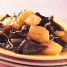 新鮮木耳 3兩 鳳梨 1/4個 白糖 1大匙 鹽 1/2小匙 醬油 少許