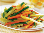 2、把油燒熱澆在三絲上,再放入鹽、味精、五香面,拌勻即可。