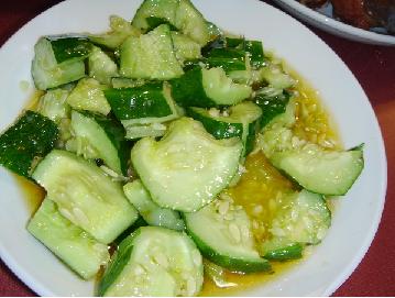 配料:原料:黃瓜400克,鹽5克,味精2克,香油10克 制作方法:做法:1、將黃瓜洗凈,去掉頭尾,順黃瓜方向剖為四瓣或八辮,切成長約5~7厘米的段。2、將黃瓜放入器皿">