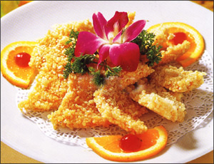 配料:大米鍋巴150克、熟芝麻5克。花生油500克(實耗油50克)、椒鹽、麻油5克。