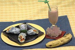 2)涂上素沙拉醬後一起卷起,切斜段即可。