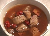 2. 將東方美人茶用熱水泡出味道後去除茶渣,接著放入蜜甘草、紅棗、杏鮑菇、素肉角、芋頭、栗子、枸杞煮約15分鐘後,再加入鹽、冰糖調(diào)味即可。