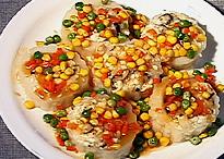 3. 將餡料鑲?cè)肟喙希湃胝艋\蒸約20分鐘後取出擺盤。