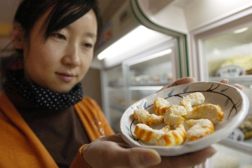 2月9日,在長春的一家素食店老板正在展示用替代品制作的“大蝦”。天然素食作為一種健康飲食,已經被越來越多的人賞識和接受。在吉林長春,素雅安靜的各式素菜館悄然流行了起來,成為人們調節心境,調整飲食結構的好去處。