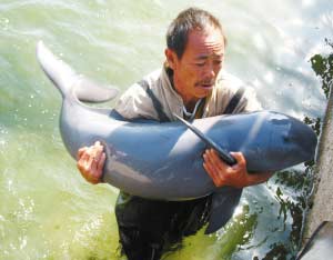 據王先生介紹,昨天上午8時左右,他到兩河碼頭買魚,發現一條漁船剛捕回一條小海豚,隨后被一魚販買走,那個魚販聲稱要將小海豚賣給酒店。