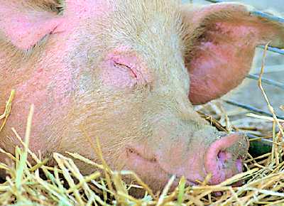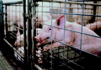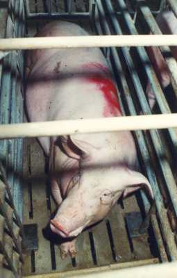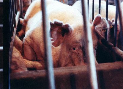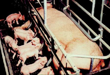 殘酷的將媽媽夾住,動彈不得,小豬無法接近媽媽,只能咬住乳頭.