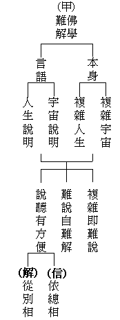 ‘佛學難解’,這是事實。為什么難解?先從它本身的內容去觀察,它的內容是整個宇宙人生,宇宙人生本來就復雜,所以說‘復雜宇宙,復雜人生’。復雜的宇宙人生簡直是無有窮盡,以有盡的言說(言說有限度、有范圍),要去探討無盡的事理,實在是太難。所以底下講:‘復雜即難說,難說自難解。’因為它太復雜,所以要將這些復雜事情說明白,不是一件容易事情。說都說不明白,你怎么會聽懂?雖有困難,這個事情還是要解決。‘說聽有方便’,這就是要求善巧方便,善巧方便就是最好的教學法。用最好的、很巧妙的方便法,教我們初學從‘信’、‘解’入門。‘信’要‘依總相’,‘解’要‘從別相’。我們現前每一位同學,都可以從這個地方入門。