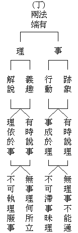 ‘法有兩端’:一切法不外乎‘事’、‘理’,事理是一不是二。‘事’是‘跡象’、是‘行動’,跡象就是現象,行動就是力用,就是三分里面的相與用。相與用都是屬于事,理是講體,還是三分里面的理體、事相、事用。事屬于科學,理屬于哲學,理事不二,圓融無礙。經典里面‘有時說理’,有些經論偏重在理論上,像《金剛經》、《百法明門論》、《般若心經》,都是偏重在理上。讀這些經典,明白這個道理,要把這個理會歸在事相上就有用處,從理要悟到事,這就圓融。‘事成于理’,一切事都有理論的依據。